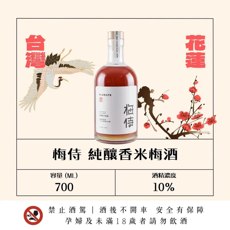 🏆2025年 IWSC國際大賽 金牌 🏆2025年 SFWSC 舊金山烈酒大賽 銀牌 🏆2025年 ISC國際烈酒競賽 銅牌 全程不額外添加酒精,以自然發酵將糖分轉化為酒精,風味純淨自然。 以花蓮玉里台稉4號香米純釀,融合台灣梅果自然酸甜。 酒液清澈,米香清雅先引,隨即轉為明亮梅果風味, 清爽順口,尾韻帶出鮮米甜韻,層次細緻且宜人。 原料:香米、台灣產精選梅、糖