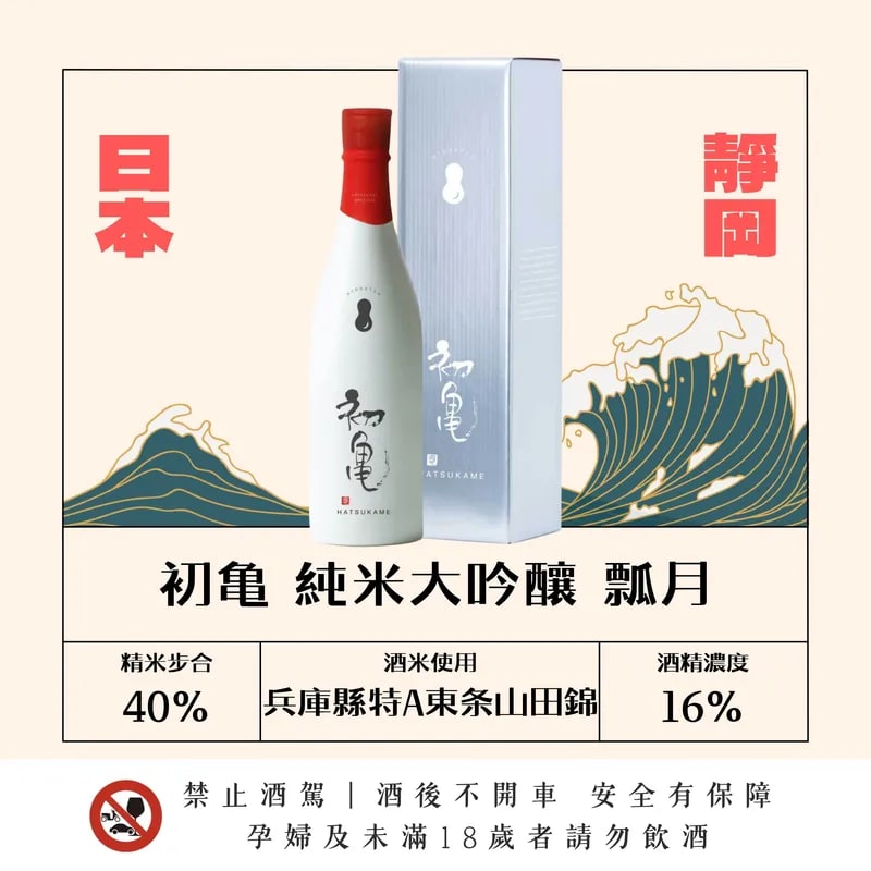🎁日本航空JAL 國內線 頭等艙用酒 來自靜岡縣的「初龜釀造」,不僅是該縣歷史最悠久的酒造,更以追求極致的「靜岡清酒風味」聞名。純米大吟釀「瓢月」是酒造旗下極具代表性的高端作品,體現了職人對米、水與酵母的完美調和。 「瓢月」擁有極其細膩的香氣,宛如在清澈的水面泛起一抹幽雅果香。口感純淨且通透,酒質輕柔如絲,入口後能感受到酒米精華轉化的旨味,層次豐富卻不過於沉重,展現出初龜獨有的冷冽美學與平衡感。 這是一款展現「清、雅、淨」三位一體的頂級純米大吟釀,適合單獨品飲或搭配口味纖細的精緻料理,感受每一口在舌尖綻放的透明感。 原料:米、米麴