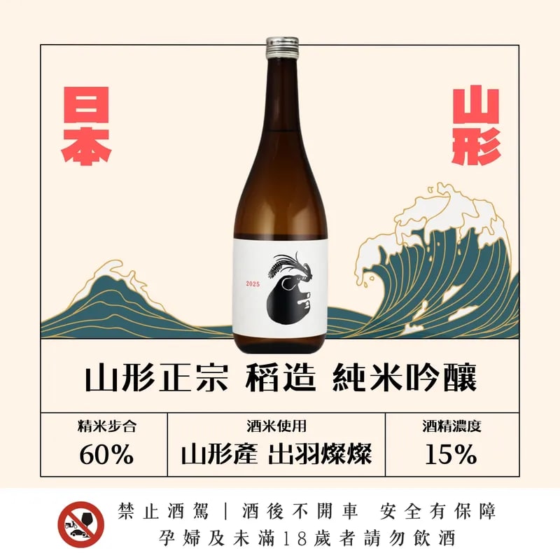 🏆2025 世界競賽IWC 日本酒部門 銀賞 來自山形縣百年名門「水戶部酒造」,「山形正宗」始終堅持以山形縣在地酒米為核心,追求清酒最原始的純淨面貌。「稻造」系列更進一步將此精神發揮至極,以山形縣獨有酒米「出羽燦燦」釀製。 香氣似未熟香蕉、覆盆子、芒果,洋溢青春活潑氣息,展現出羽燦燦米種的特色香氣。酒體帶新鮮的礦石感且富含米旨味,尾韻如山形正宗一貫風格,簡潔俐落,酸度均衡。入口柔和,尾韻乾淨,充分體現了水戶部酒造對於酒體架構的精準掌握。 它是一款極具辨識度的食中酒,能完美對應日式鮮魚料理、時蔬,甚至是義大利料理,讓您的餐桌品飲體驗更加精緻且無負擔。 原料:米、米麴