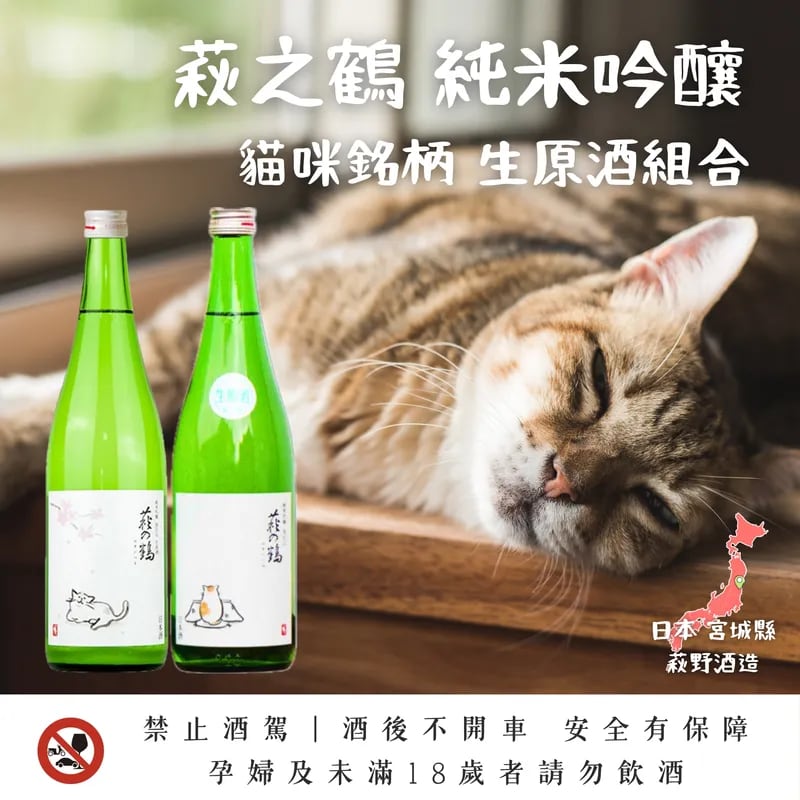 不必出國,也能同步感受日本酒造的季節更迭。這對超人氣貓咪組合是生原酒愛好者的首選: 暖桌貓|帶有蘋果與哈密瓜香氣,旨味圓潤微甜,如躲在暖桌般療癒。推薦從冰飲至常溫,感受多層次風味變化。 櫻花貓(預計4月中下旬抵台)|採用大吟釀等級宮城酵母,在嚴格溫控下釀造,酒質輕盈甘甜。 此組合在萩之鶴特有的宜人酸度調和下,展現極佳的易飲性,是任何人都能輕鬆享受的生原酒酒款。 原料:米、米麴