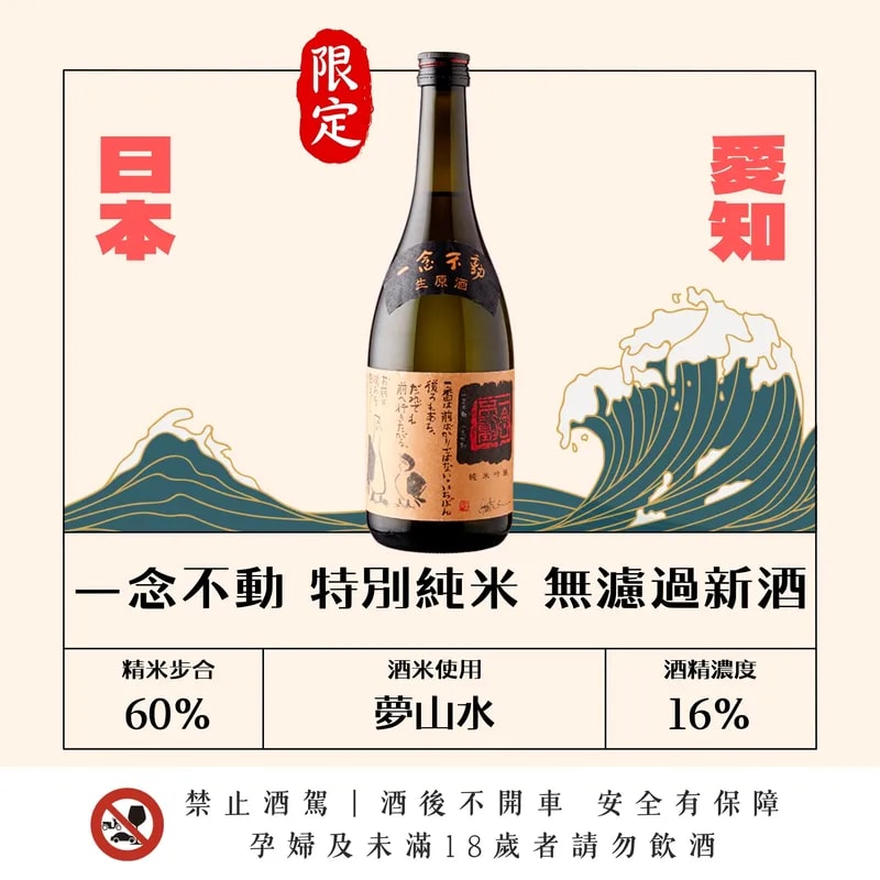 🌟愛知縣特約店限定酒 這是一款搶在冬季採收後,首批壓榨即裝瓶的限量新酒。 以今年新米釀製而成的初榨酒,可體會極致清新滋味。口感輕快,並帶有俐落酸度,很適合搭配醬烤類料理、新和食和義式或其他西洋風料理。雖是初榨,但明顯的花果香氣及清爽鮮味,以及尾韻飽滿與多汁感,是此酒款最大特色。 原料:米、米麴