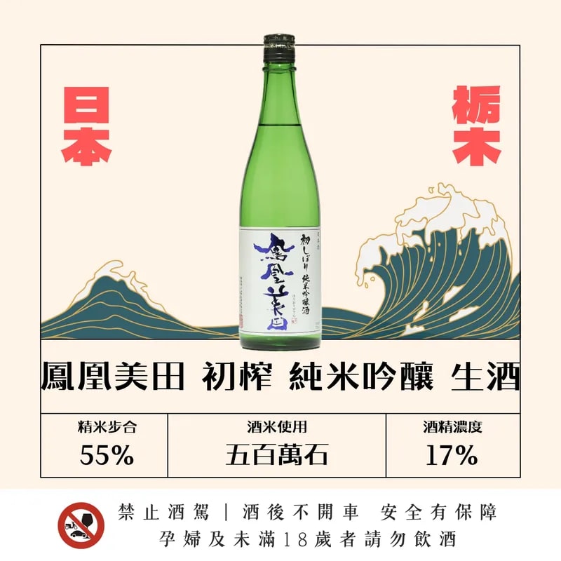 鳳凰美田初榨系列是每年冬季最受期待的作品。 這款無濾過生酒保留了酒液最原始的風味,帶有豐富且清新的麝香葡萄與水梨香氣。入口後能感受到微細的二氧化碳氣泡感,伴隨著生酒特有的多汁甜味與俐落酸度,口感純淨透明且充滿活力,是品味新酒季最完美的起點。 此款無濾過生酒甘甜不膩,適合佐餐 原料:米、米麴